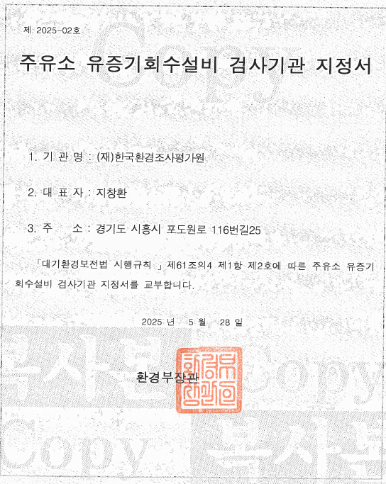(재)한국환경조사평가원이 2025년 5월 28일자로